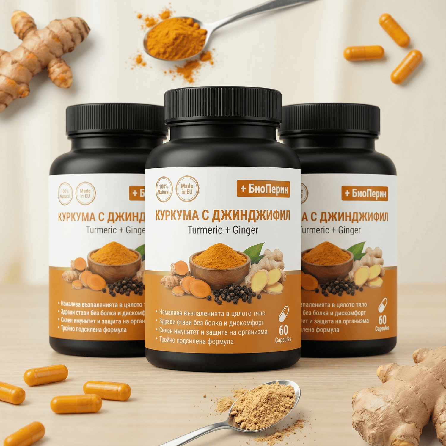 Био Куркума с Джинджифил и Черен Пипер (BioPiperin)